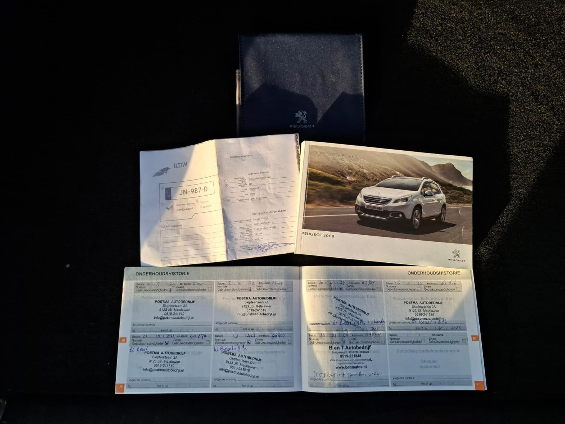 De onderhoudshistorie is aanwezig en de boekjes zijn volledig ingevuld. De distributieriem is vervangen op 15-01-2026 bij 67.564 km.